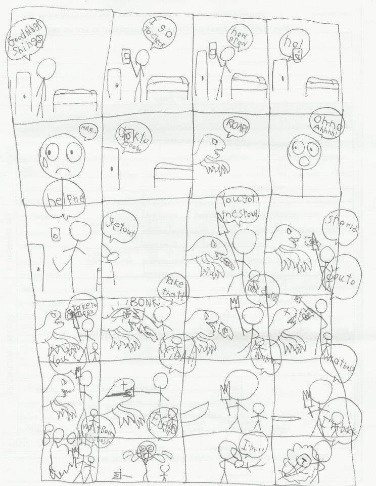 我發現她非常會畫畫,筆下人物表情豐富,眉目間很有神韻,而且有對話,其台詞的複雜度遠超過她平常能講的,我在重新確認女兒的限制之下,也重新認識了她的能力。