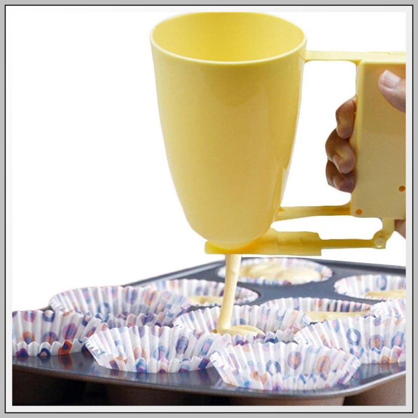 要多少人力嗎?答案很簡單,至少兩位,一個拉著孩子的手協助維持長嘴壺穩定,一個幫忙拿著蛋糕模避免對不準確而溢出,還要不時注意孩子吐口水或伸手拉眼鏡或頭髮。