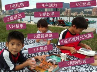 我家小孩:最善良、最誠實、有創意、會思考、有主見、愛分享、超大方、好幫手、很堅持、有毅力、說到做到、熱心熱情、講理理性、愛閱讀、愛乾淨、很單純......。
