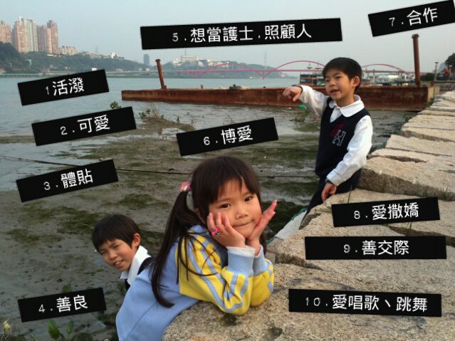 3.守規矩。4.愛照顧人:很愛照顧比自己能力差的或是年紀較小的小朋友。