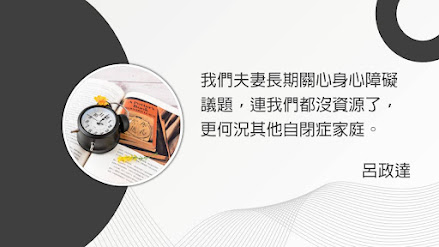 我們夫妻長期關心身心障礙的議題,我還寫過一本《殘,但是我X得見》,連我們都沒資源了,更何況其他自閉症家庭。
