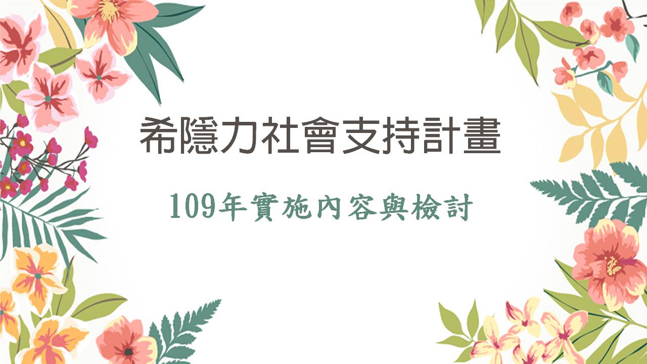 希隱力社會支持計畫109年的實行內容與檢討