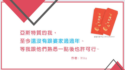 - 【亞斯伯格者賀年系列】P2. 亞斯特質的我,至今還沒有跟先生的父母過過年。等我跟他們熟悉一點以後也許可行~/作者: Mika https://bit.ly/39YJECX