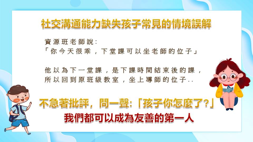 - 社交溝通能力缺失的亞斯孩子最常見的『被誤解』實例。-感謝曉帆授權轉載