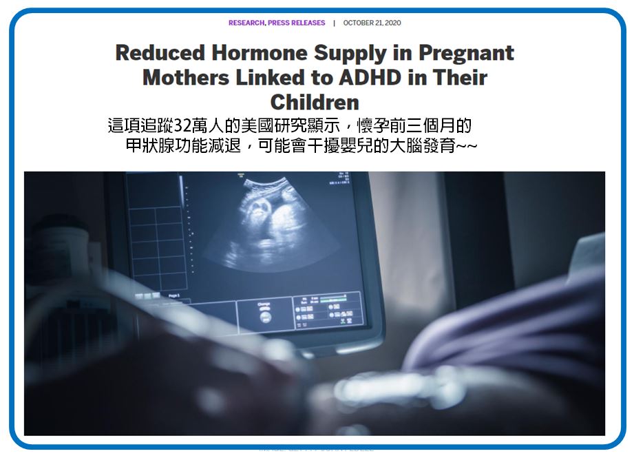 追蹤32萬人的美國研究顯示,懷孕前三個月的甲狀腺功能減退,可能會干擾嬰兒的大腦發育