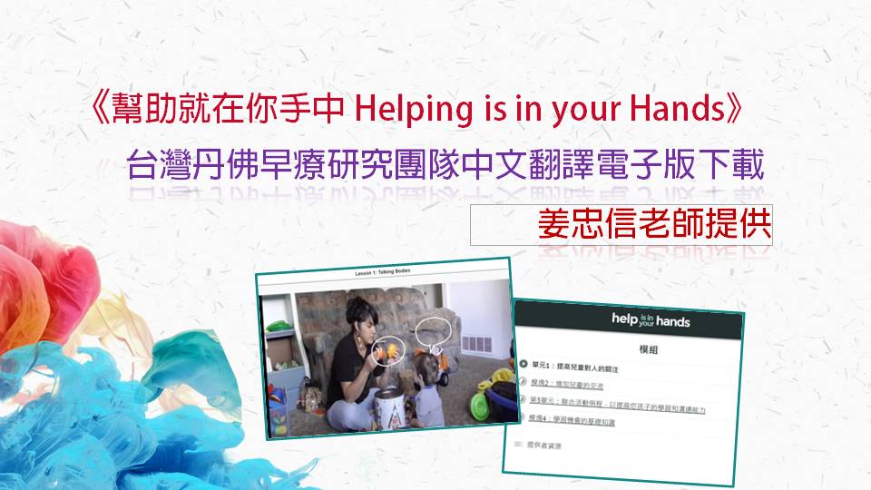 《幫助就在你手中 Helping is in your Hands》台灣丹佛早療研究團隊中文翻譯電子版下載/姜忠信老師提供