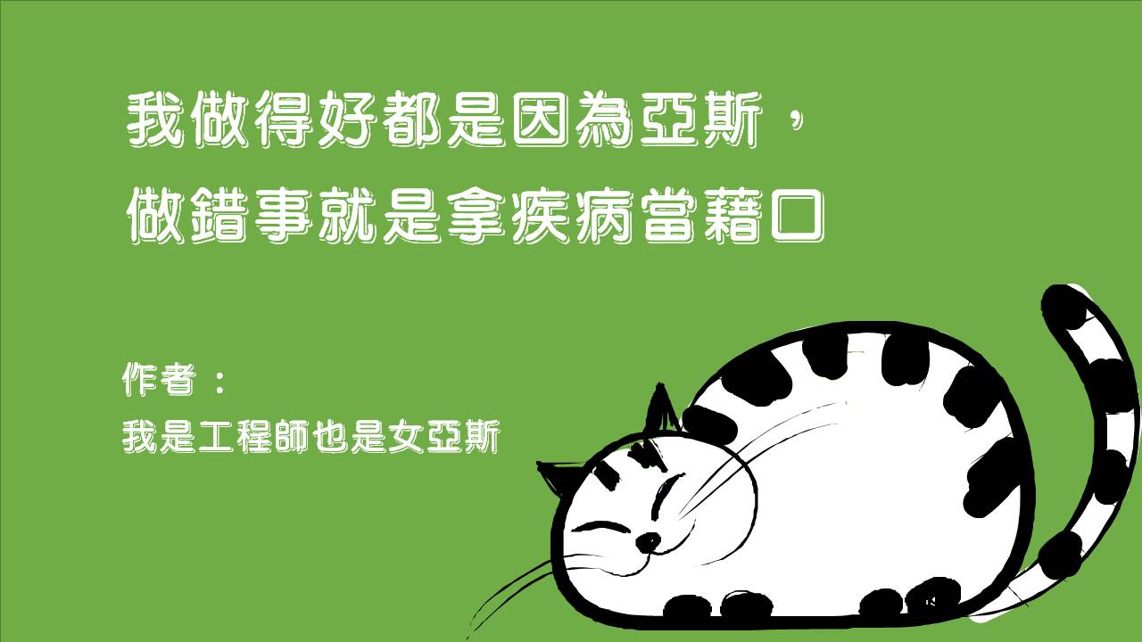 我做得好都是因為亞斯,做錯事就是拿疾病當藉口/作者我是工程師也是女亞斯
