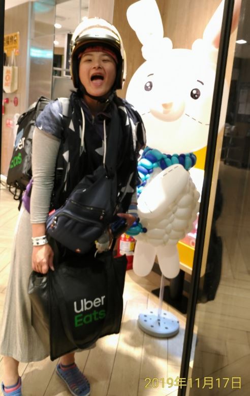 但是為了不被外送公司停權,只能在每次停權期限快到時,陪著她送幾單,有些客人住處沒電梯,她就拄著拐杖爬樓梯送餐。為了生計我只好也去註冊外送,她就陪著我外送。 也許是老天疼憨人,跑外送已經整整一年了,她常去取餐的餐廳老闆或員工都很疼她,她也嘴甜,會姐姐哥哥阿姨叔叔伯伯的叫。其實她也只會這個,要她說再多的話,也說不大出來。