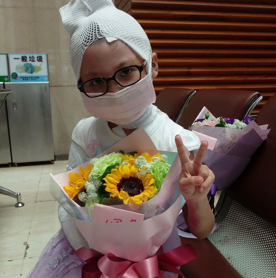 燙傷出院後,我們雖然沒有辦法回幼兒園上課,但依然跟同學們一起出席人生的第一個畢業典禮,會場上展示著每個孩子的畢業紀念冊,個個看起來又帥又美,我對大家說「還好我女兒是在受傷前拍的,好美的紀念呀!」