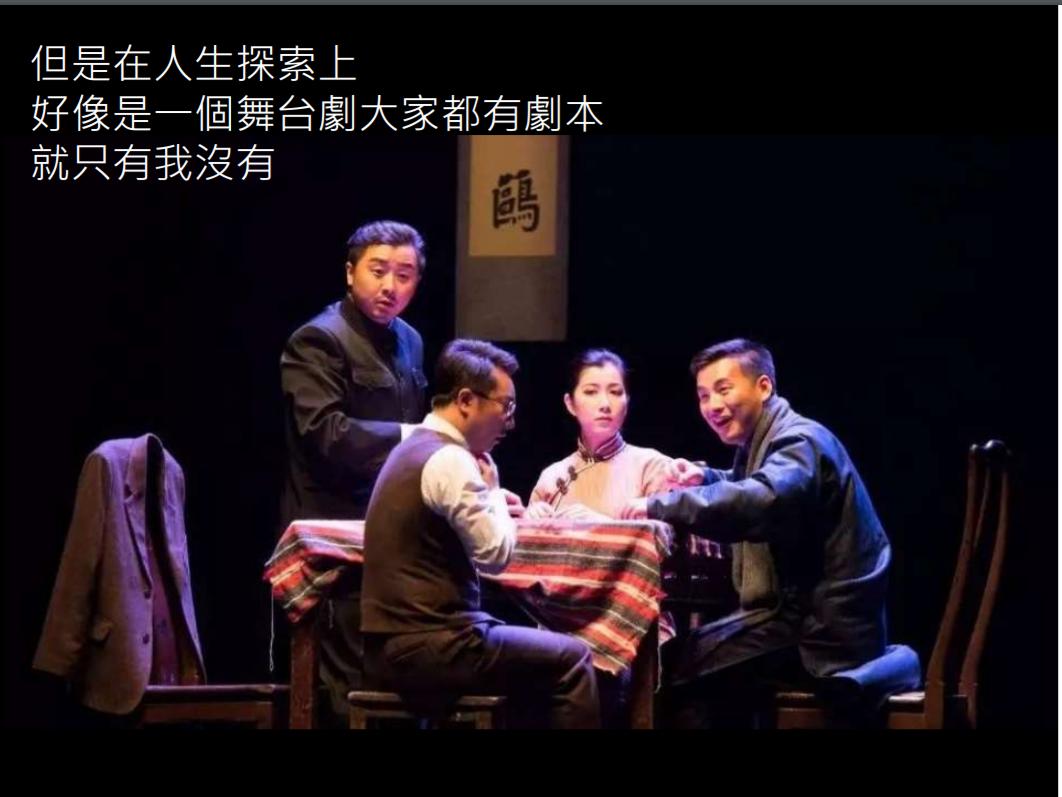 | 在人生探索上像是一個舞台大家都有劇本,只有我沒有。 |