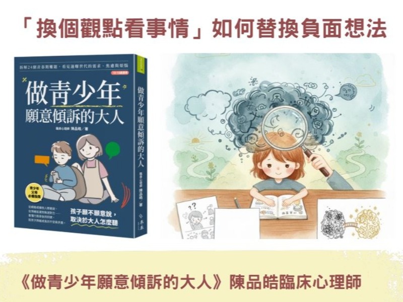 「換個觀點看事情」如何替換負面想法/《做青少年願意傾訴的大人》陳品皓臨床心理師
