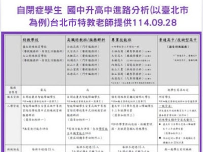 自閉症學生 國中升高中進路分析(以臺北市為例)台北市特教老師提供114.09.28