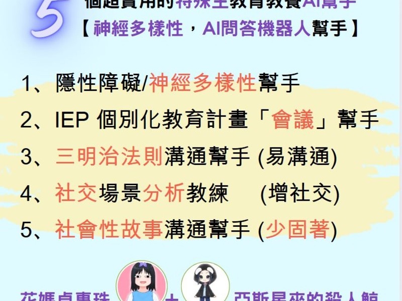 五個超實用的【神經多樣性,AI問答機器人幫手】/花媽卓惠珠和亞斯星來的殺人鯨共同製作