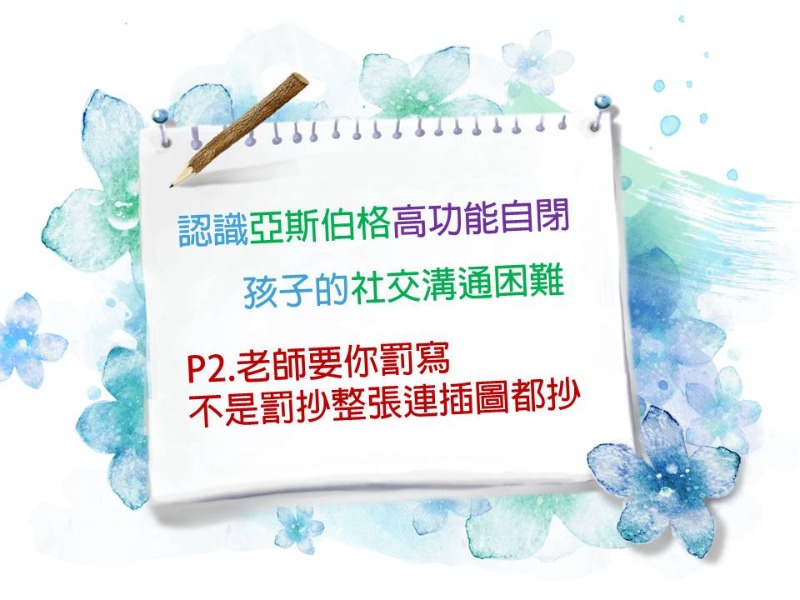 認識亞斯伯格高功能自閉孩子的社交溝通困難P2.老師要你罰寫不是罰抄整張連插圖都抄