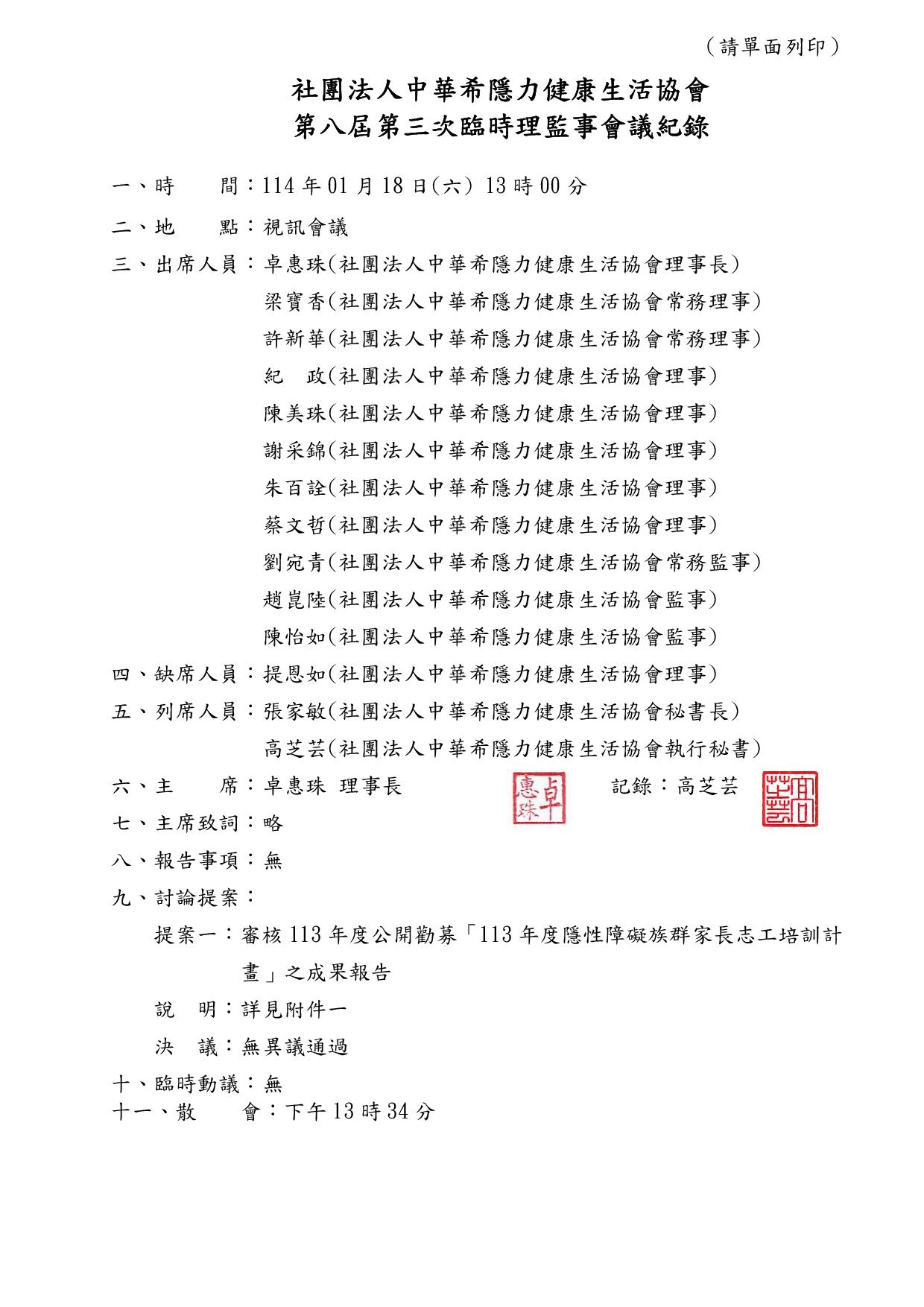 114年01月18日(六) 第八屆第三次臨時理監事會議紀錄